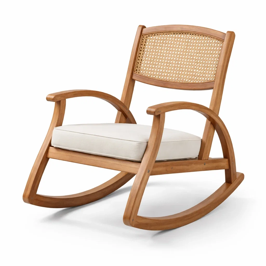Fauteuil à bascule en bois d’acacia avec corde tressée