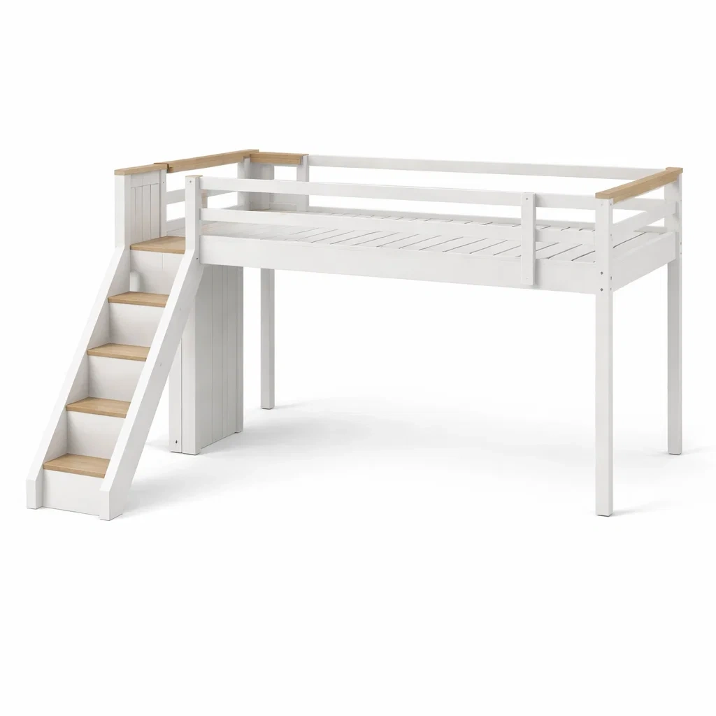 Lit mezzanine en pin blanc et bois naturel pour enfants