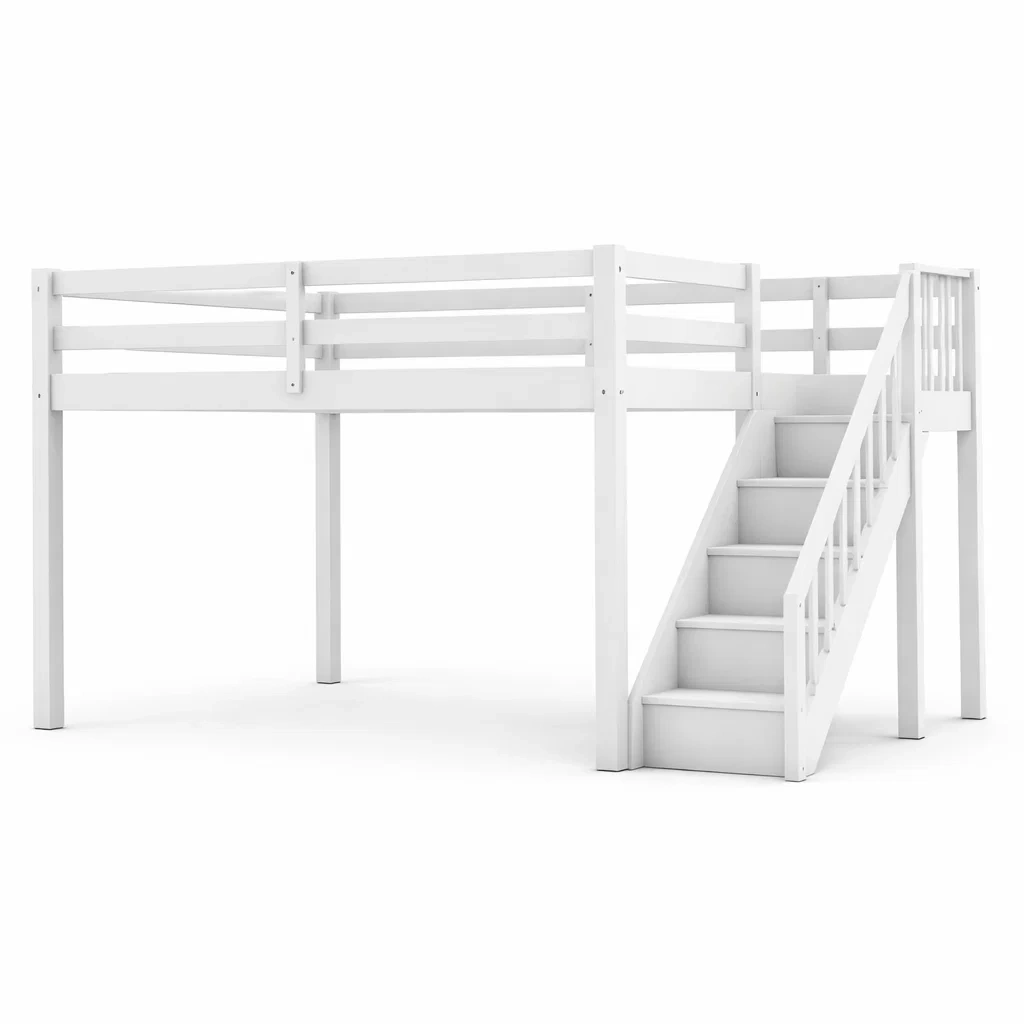 Lit mezzanine enfant en bois blanc avec escalier 200x140x180 cm