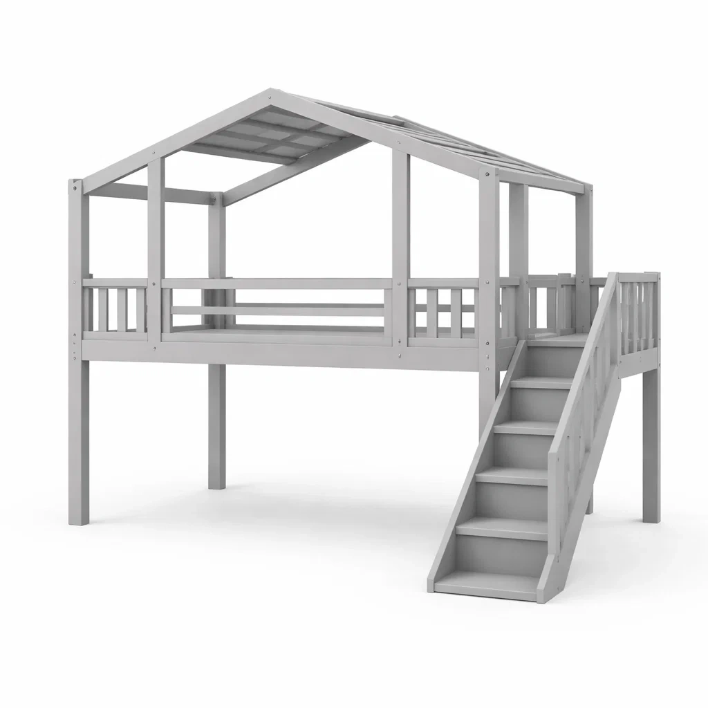 Le lit cabane est fabriqué en bois de pin massif, offrant une robustesse et une sécurité pour les enfants.